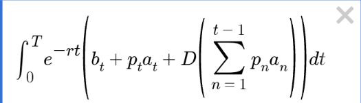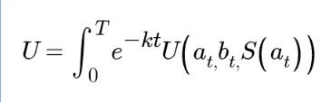 Lifetime utility is the sum of utilities over an individual's life T (I forgot to end the integral with dt - surprisingly I make these sorts of notational mistakes often, yet it’s too cumbersome to correct so I'll just acknowledge here):